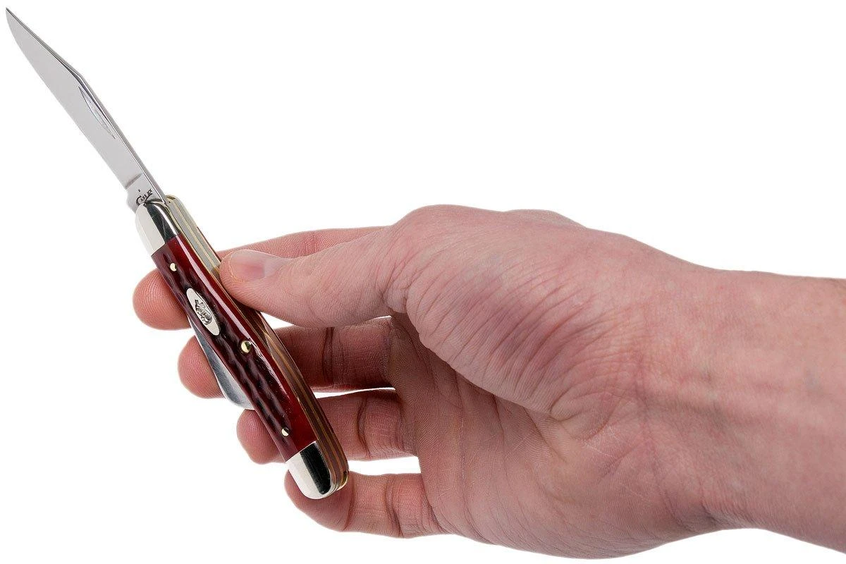 Le Case Medium Stockman est un véritable classique dans le monde des couteaux de poche. Ce modèle est presque aussi vieux que l’ensemble de la catégorie traditionnelle elle-même. Ce Case Stockman est une incarnation très pure de ce modèle classique. Il a trois lames : une lame clippoint comme lame principale , une lame sheepfoot de 5,0 cm et, bien sûr, la lame Spey, qui est presque indispensable pour un Stockman. A l’origine, il s’agissait d’une forme de lame qui était utilisée pour dépeçage.