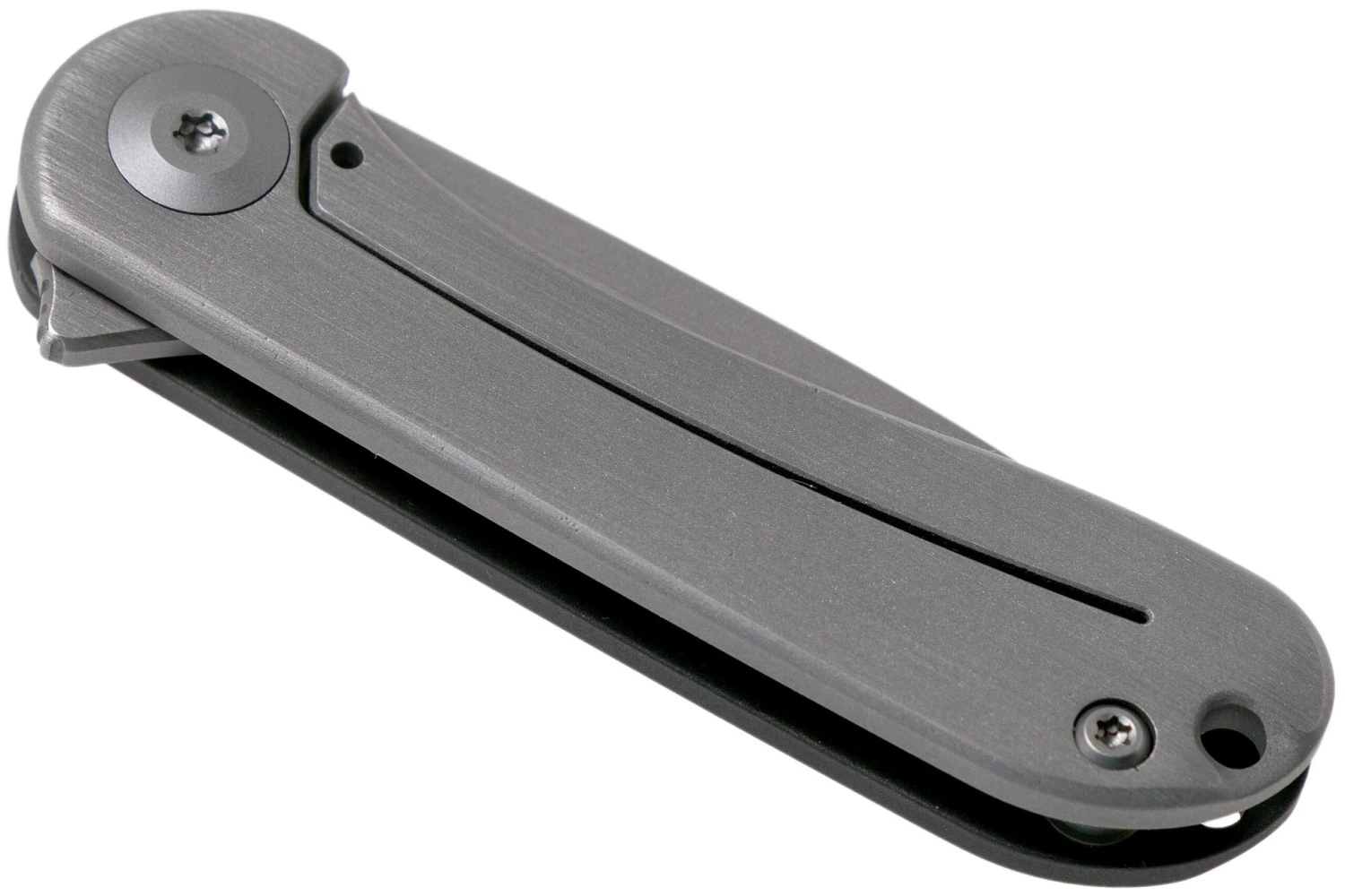 Le Civivi Mini Elementum C18062Q est un couteau de poche tout petit. Un couteau de poche porte-clés, en fait. Les lignes du “grand” Elementum sont présentes, mais en petit format. Ce couteau s’ouvre très rapidement grâce au flipper et aux roulements à billes. Le verrouillage se fait via un framelock solide. Vos doigts sont donc en sécurité lorsque vous utilisez le couteau.