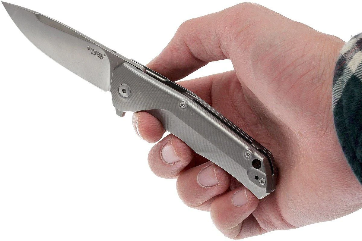 Le LionSteel TRE est un couteau pliant unique et révolutionnaire. Cela grâce au système LionSteel Three Rapid Exchange. Vous choisissez vous-même de monter le flipper, ou bien le repose-pouce, ou même les deux. Vous pouvez donc installer vous-même le flipper et le repose- pouce sur la lame. Un porte-clés avec des outils torx T6 et T8 est livrés avec le couteau. La possibilité de changer vous-même le flipper et le repose-pouce vous permet de choisir de les enlever tous les deux et ainsi d’ouvrir le couteau à deux mains.