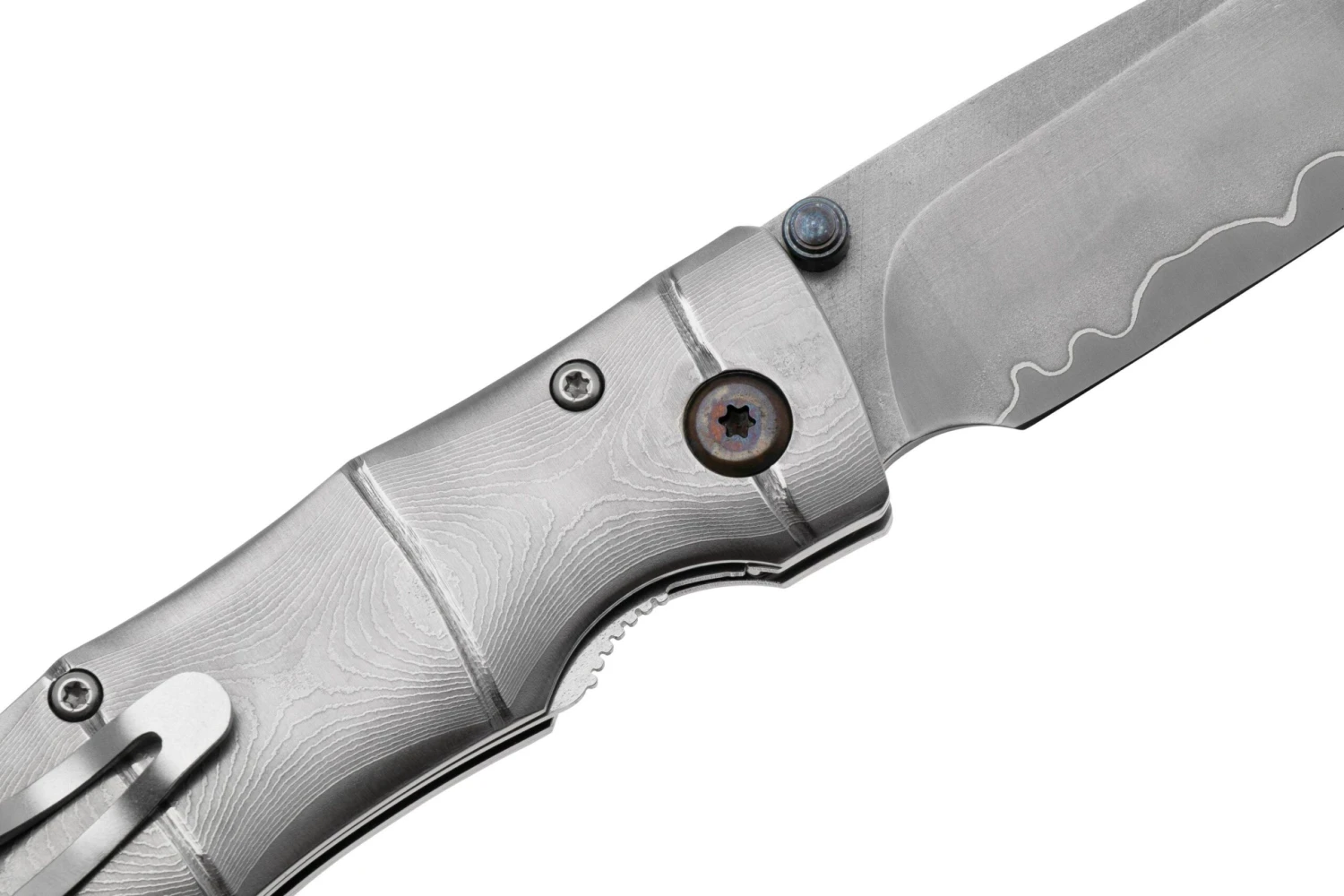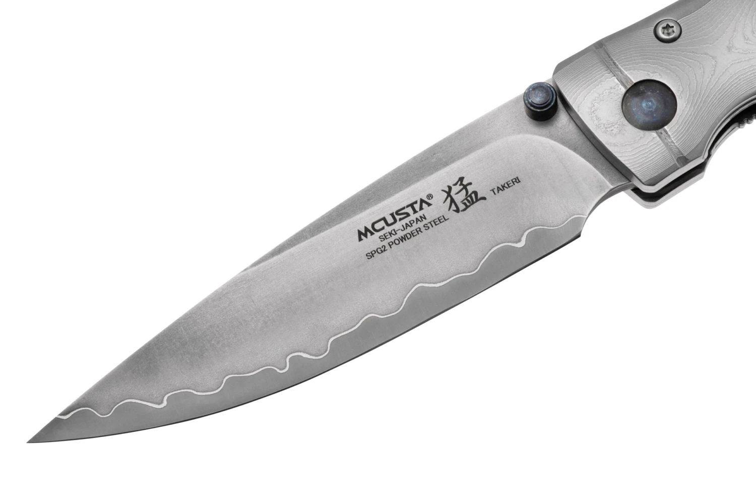 Le Mcusta MC-0202G Shinra Maxima Takeri est un grand couteau de poche très élégant. Parfait pour ceux qui ont une préférence pour les grands couteaux de gentleman. Le manche en acier damassé est incroyable. Mcusta a doté le manche d’une texture bambou. On a donc la sensation d’avoir un manche fabriqué à partir d’un vrai morceau de bambou. Non seulement c’est magnifique mais cela ajoute également une bonne adhérence.