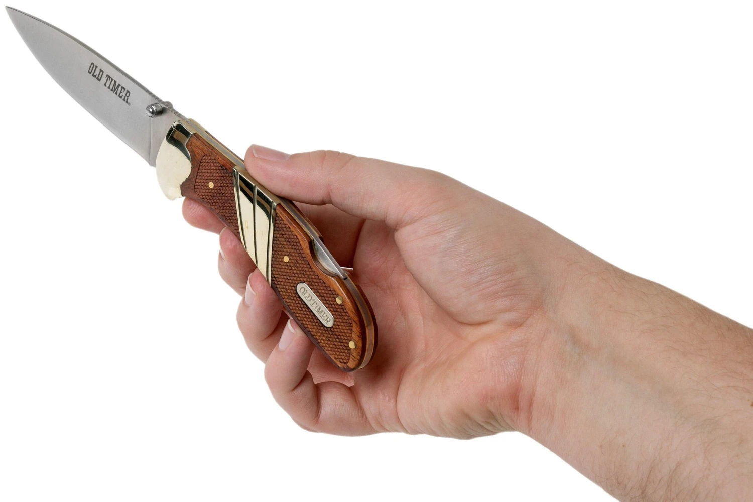 Le Old Timer Large Lockback 32OT est un couteau de poche à prix abordable avec manche en bois. Une rencontre entre deux genres : un couteau de chasse classique ou couteau de gentleman et un couteau de poche EDC moderne. On ouvre la lame grâce au repose-pouce et un linerlock la verrouille en position ouverte.
