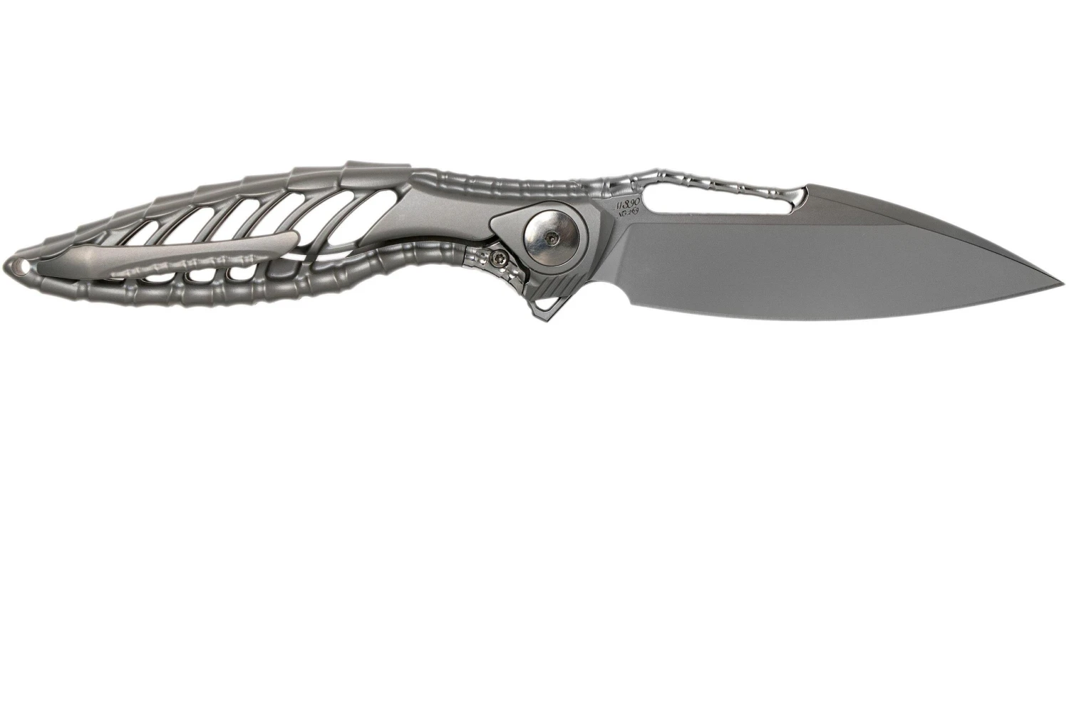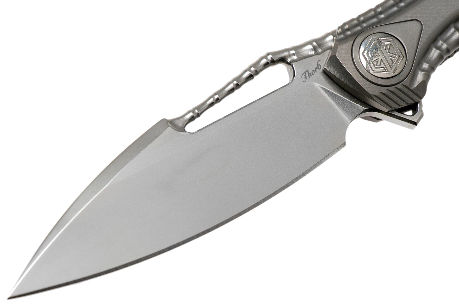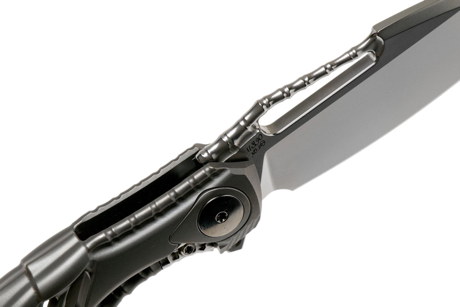 Le Rike Thor 6 est un couteau de poche très particulier avec un look des plus extravagants. La manche de ce Rike Thor 6 est fraisé dans un seul bloc de titane. On l’appelle cadre intégral. Un processus de fabrication très difficile. Le manche doit être fraisé avec différents outils ou sous différents angles. Le tout en suivant des exigences très élevées. Il n’y a pas de place à l’erreur car le couteau doit fonctionner à la perfection. Rike est un vrai maître en la matière.