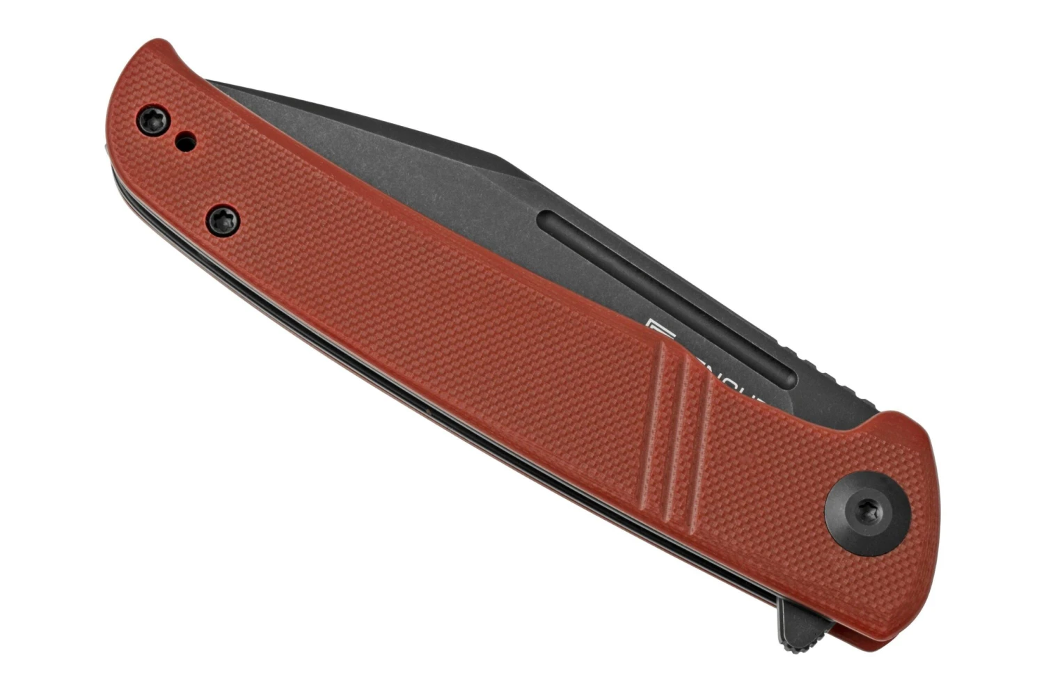 Le SENCUT Brazoria est un couteau de poche simple, signé Sencut. On ouvre la lame clippoint grâce au flipper, les roulements à billes rendant l’action très souple. Une fois ouverte, la lame est verrouillée par un solide linerlock en inox. Le manche en G10 est doté de plusieurs empreintes pour les doigts et d’ouvertures. Cette forme donne à chaque couteau une excellente prise en main pendant la coupe.